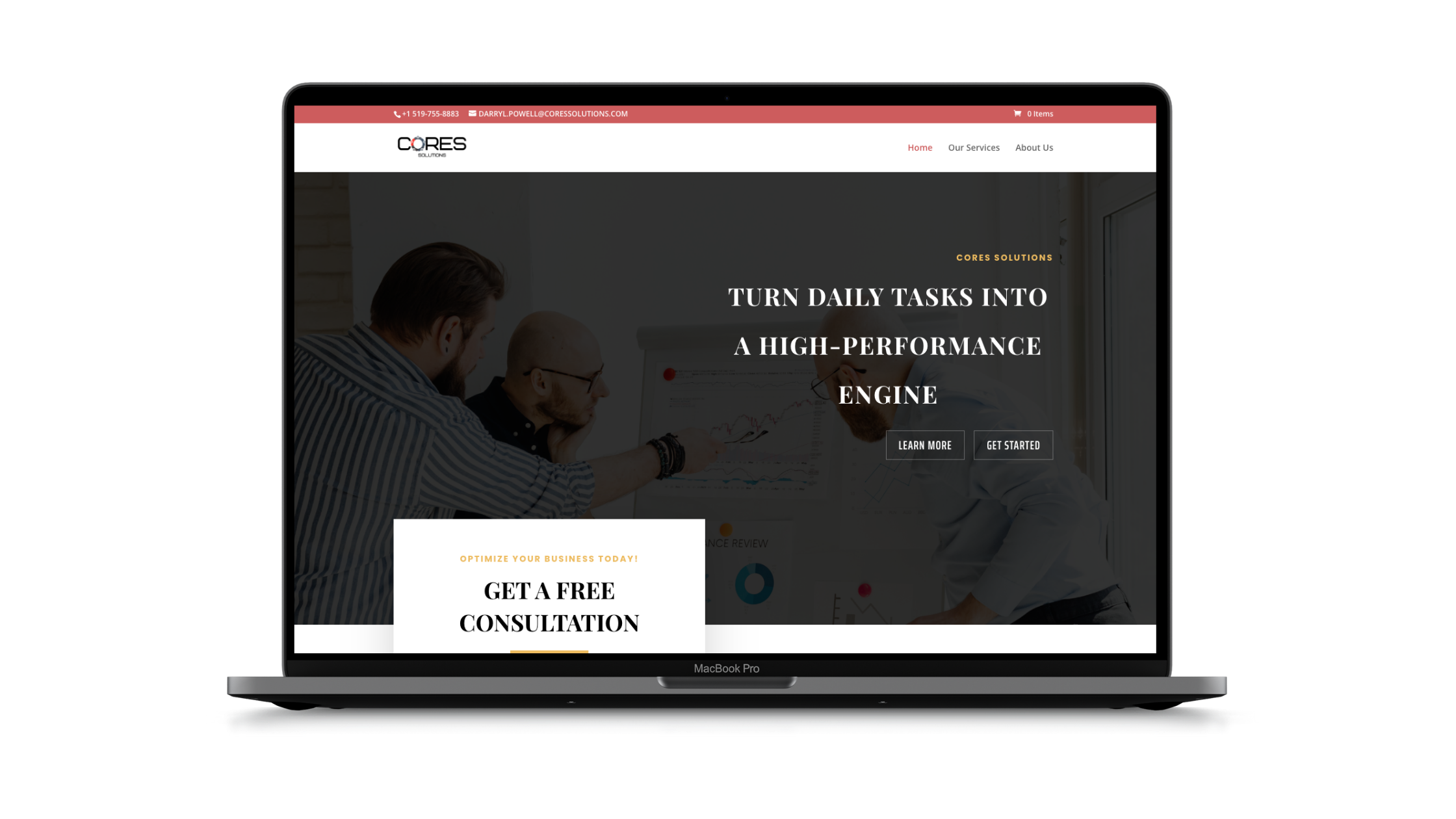 The website redesign for Cores Solutions focused on simplifying complex offerings and aligning the brand’s messaging across the site. Through intentional layout, clearer copy, and improved structure, the new site helps visitors quickly understand the value of their services and take the next step with confidence.